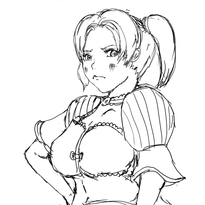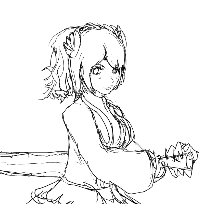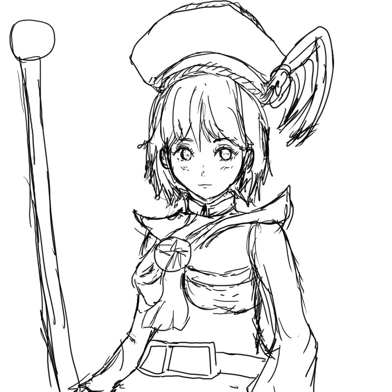 このアングルはあんまり描かないので苦労しました。
